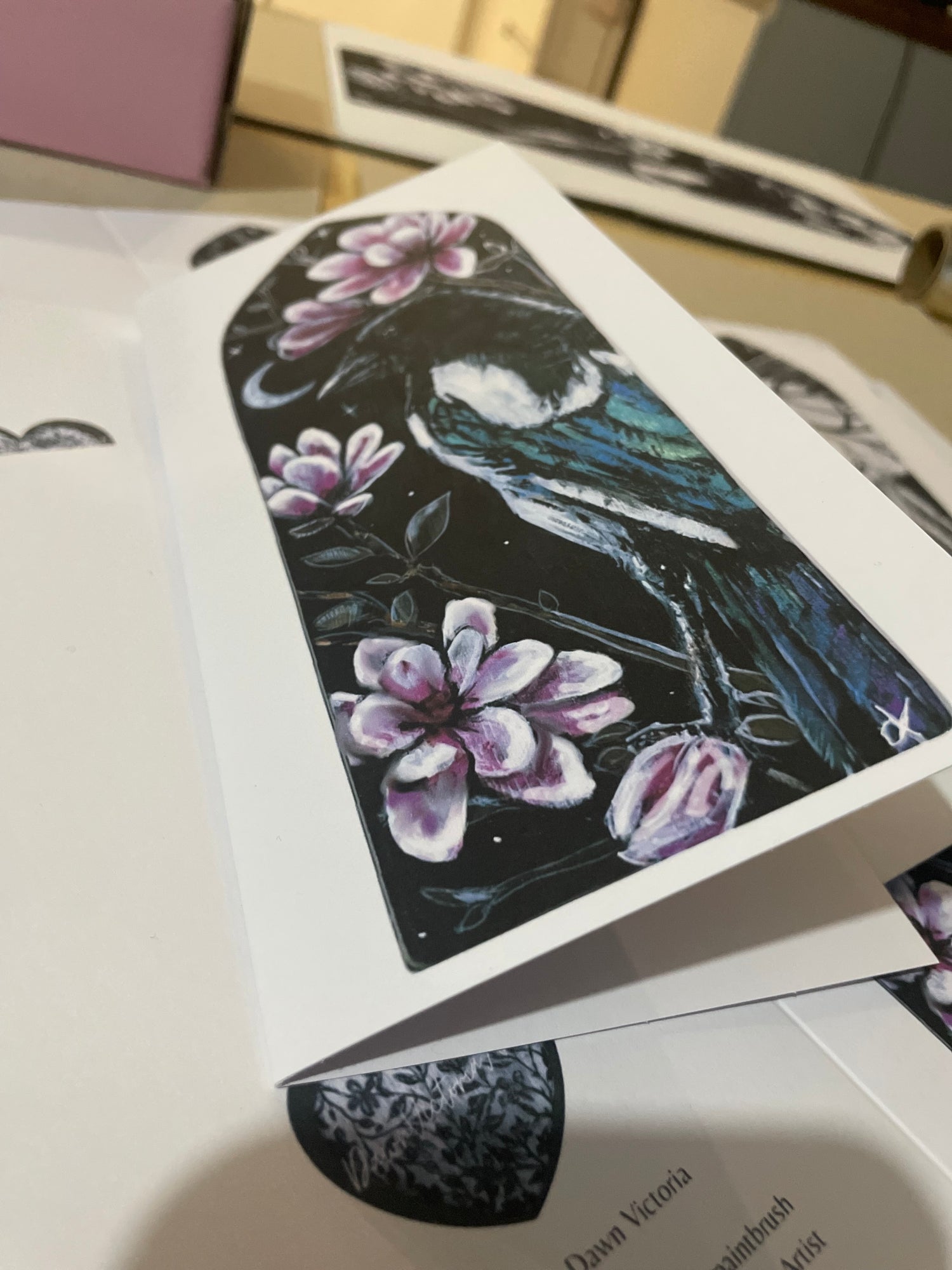 This artwork forms part of Dawn Victoria’s Moonlit Messengers series, a growing collection of animal guides inspired by folklore and the subtle language of the natural world.